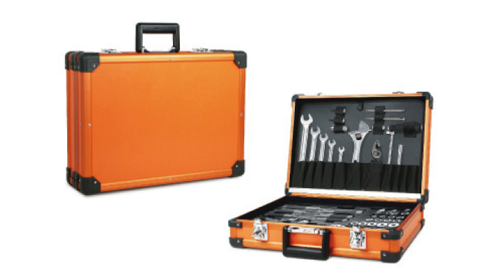 蓋側はポケット収納、底側は収納物に合わせた切り抜き加工のウレタン内装材です。