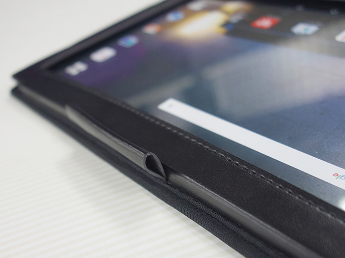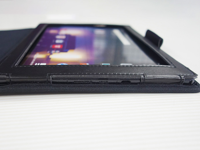 タブレット側面のボタンは生地を避けているので使用することが出来ます。