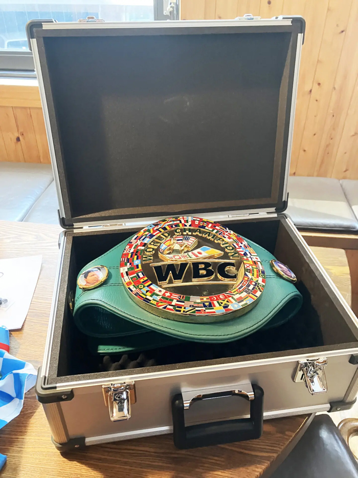 チャンピオンベルトを収納するケースです。 ボクシングWBC世界バンタム級王座の中谷潤人選手のチャンピオンベルトを作りました。