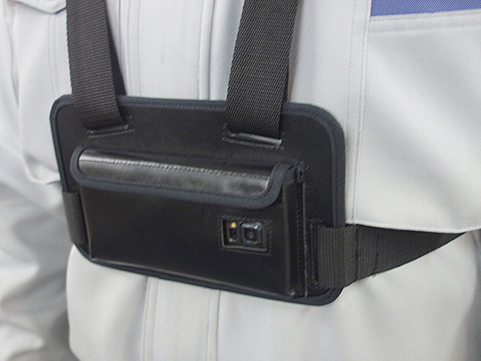 スマートフォンを胸元に固定するためのソフトケースです。 ベルトは長さ調節可能、様々な体型にフィットします。