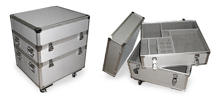 重箱のように積み重ねが出来るコンテナケースです。キャスター付き。