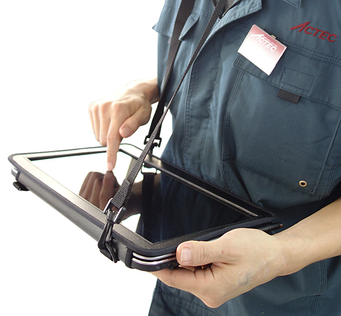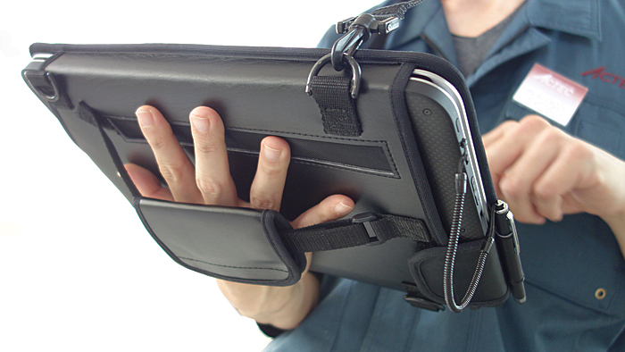 Y字のハンドベルトに手を通しDELL XPS 12をしっかりと保持します。