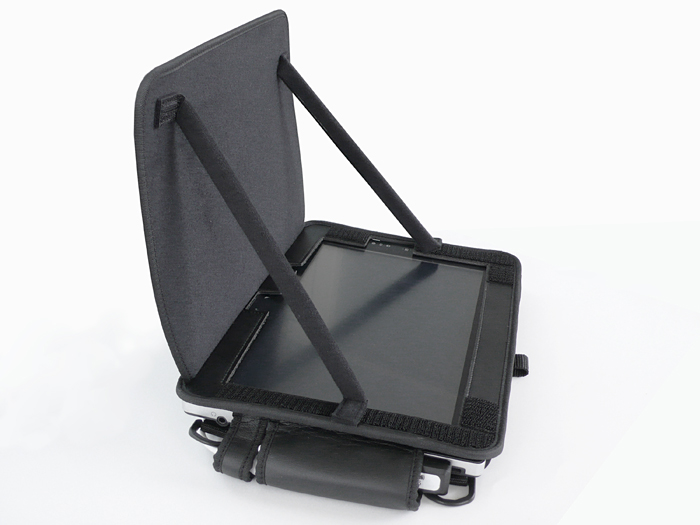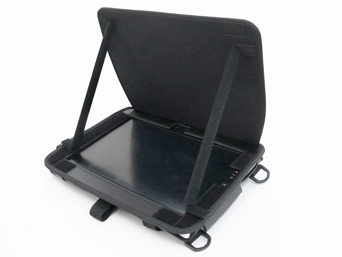 保護用の蓋は遮光カバーとしても使えます。蓋の角度固定は二本の柱(マジックテープ留め)で行います。