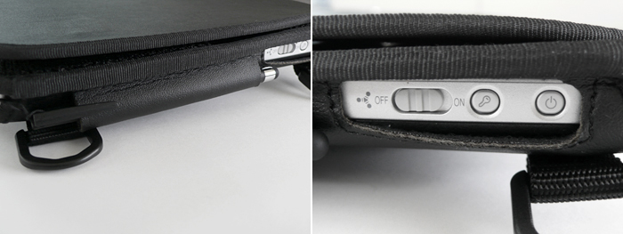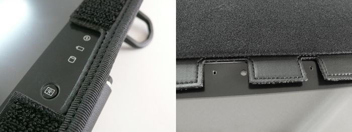 ソフトケース側面にはスタイラスペンを通しが付いています。 側面ボタン部は抜き穴になっています。