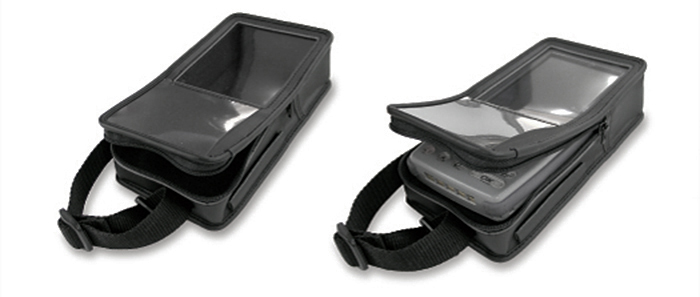 内部にクッションが入っており、平らではない形状のハンディターミナルにもぴったりの形状になっています。 ハンディターミナルの挿入部はファスナーになっています。