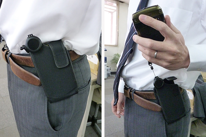 スマートフォンを楽に出し入れできるホルダーです。