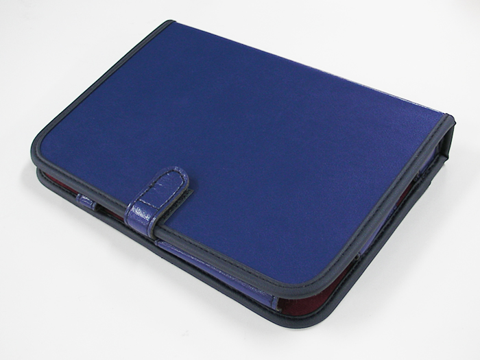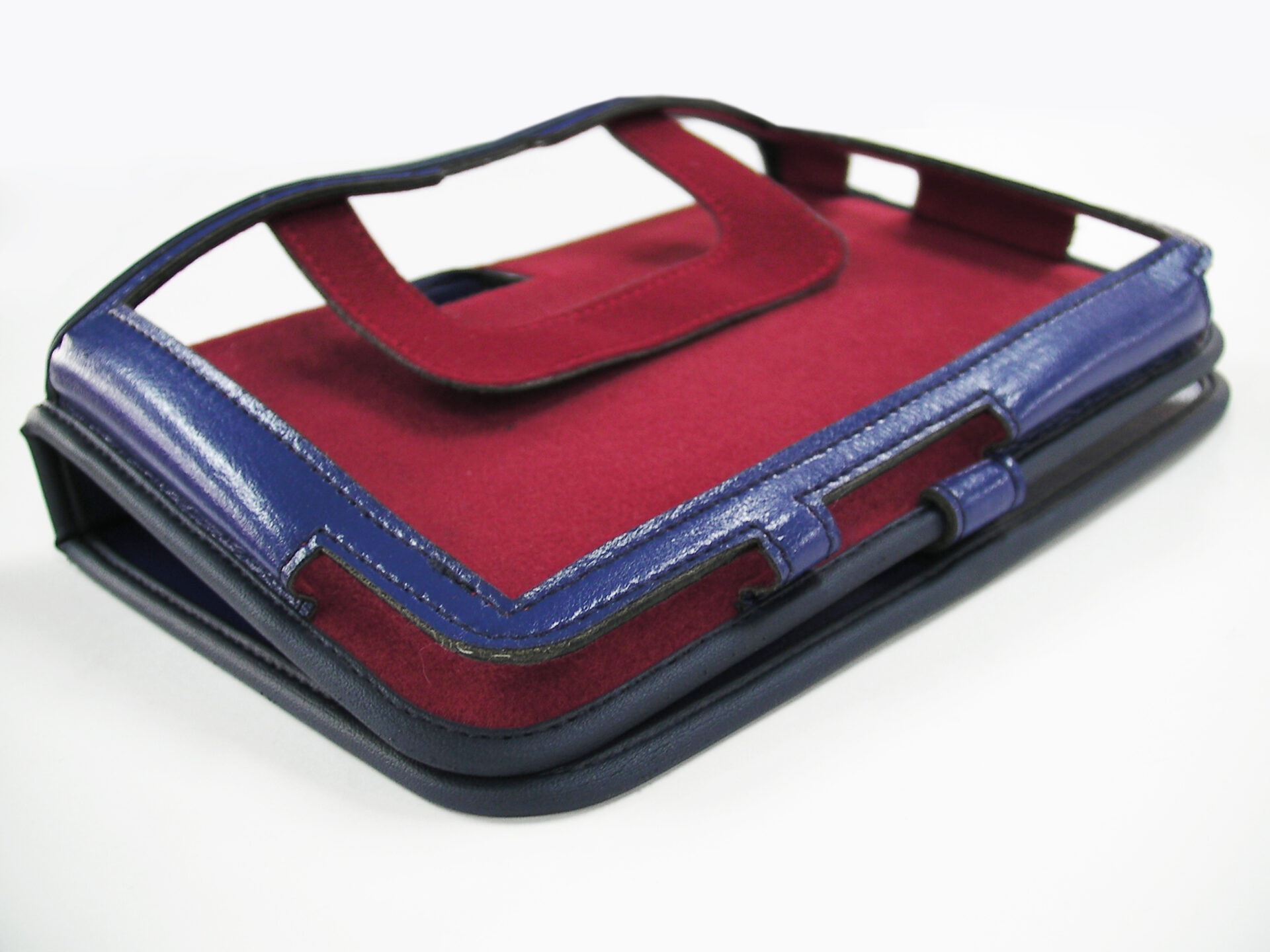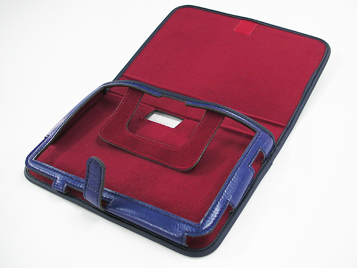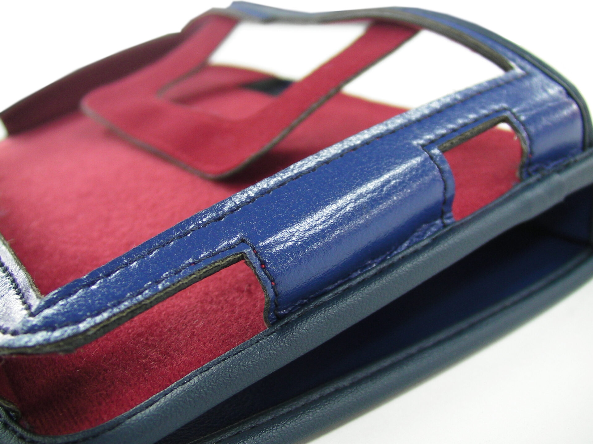 表生地は青の合皮、内生地は赤のパイルを使用しています。