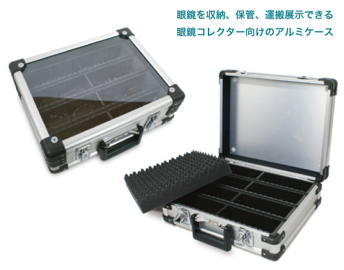 眼鏡コレクションを展示するのに最適なアルミアタッシュケースです。