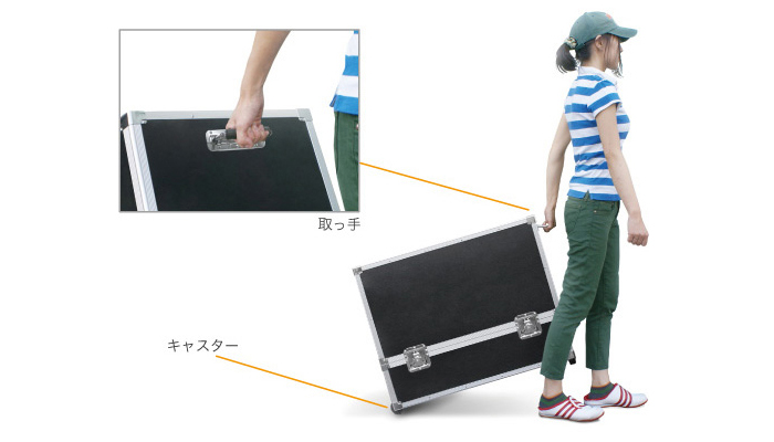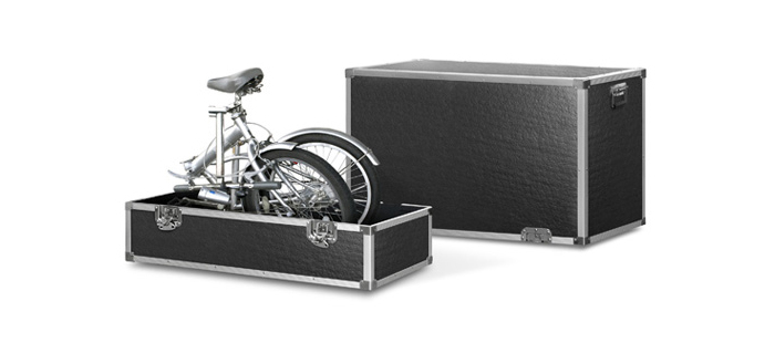 折りたたみ自転車の運搬用のケースです。運搬時に便利な取手とキャスター付です。 ケースの板材にハニカム構造の プラパール を採用、軽量で強度的にも優れています。