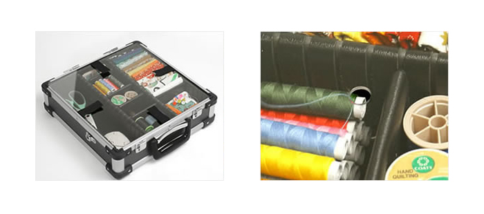 ケース本体部は可動仕切りが付いているので手芸道具を自分の好きなように入れることができます。