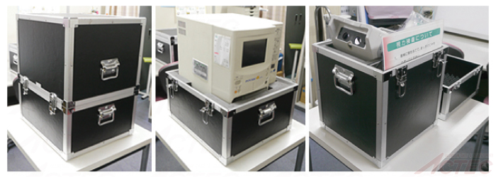 自動血球計数装置と、自動検眼器を収納・運搬する専用のアルミケースです。