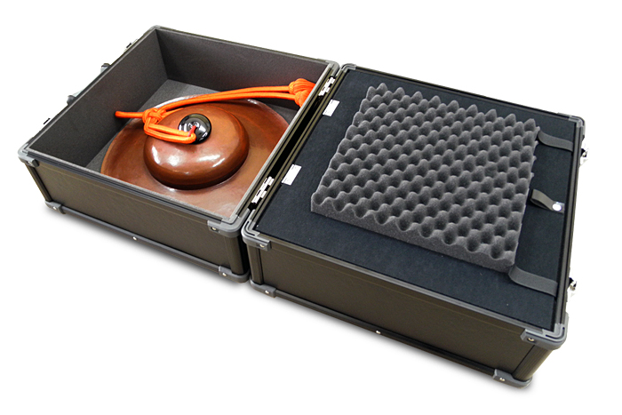 妙鉢(みょうばち)を収納するアルミケースです。 御坊様の移動時の身なりや、行き先の雰囲気などを考慮し、全て黒で統一したケース。