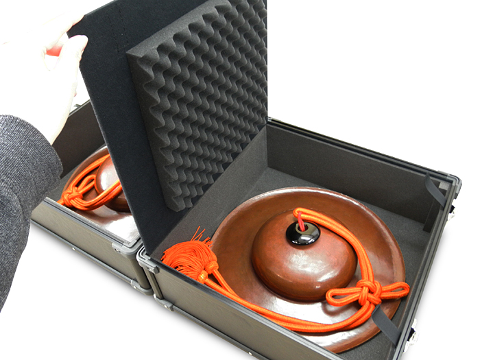 妙鉢(みょうばち):シンバルのような形をした仏教の梵音具で、法要や葬儀などで使われる鳴り物です。二枚を擦り合わせたり、叩いて音を出すことで、法要の始まりや終わりを知らせたり、仏様を呼び、供養の雰囲気を高める役割があります。