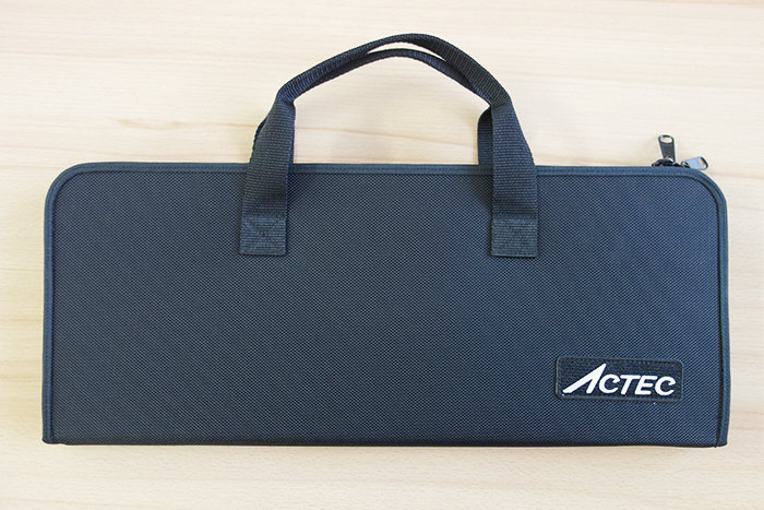 表生地にナイロン黒を使用しています。取手付きなので持ち運びに適したバッグです。 アクテックのワッペンが縫い付けられています。