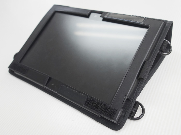 液晶画面保護用の蓋を背面に折り返して固定することで、傾斜を付けてタブレットを使用できます。