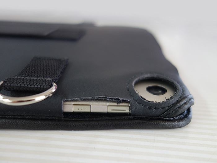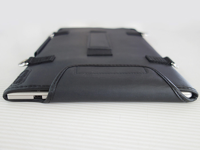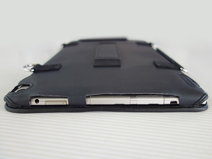 ショルダーベルト取付用のDカンが4つケース側面にスタイラスペン通しが付いています。
