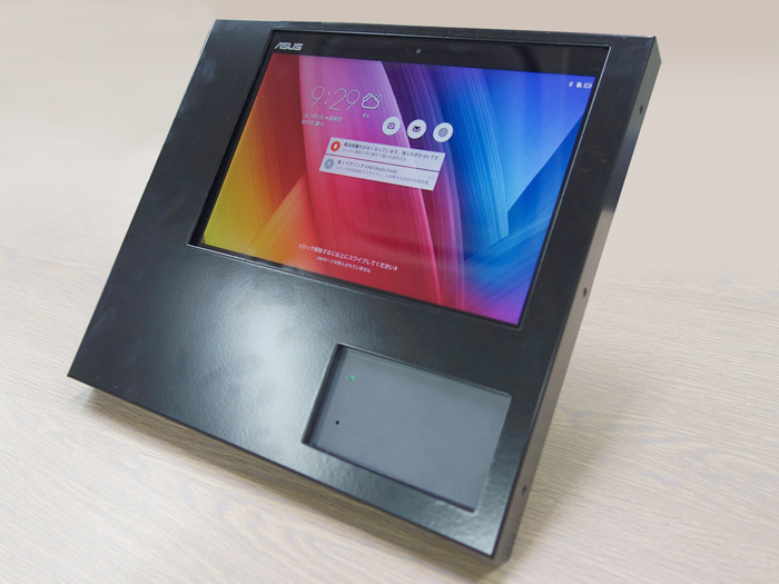 勤怠管理システムを組み込んだASUS ZenPad 10とFeliCaを一つにまとめて 壁に取り付けるための金具です。
