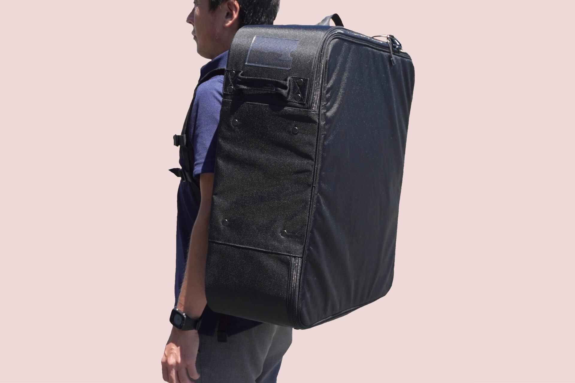 まず、どんな所へでも持ち運びしやすいようにリュック型で設計し、運搬時に機材同士が当たって