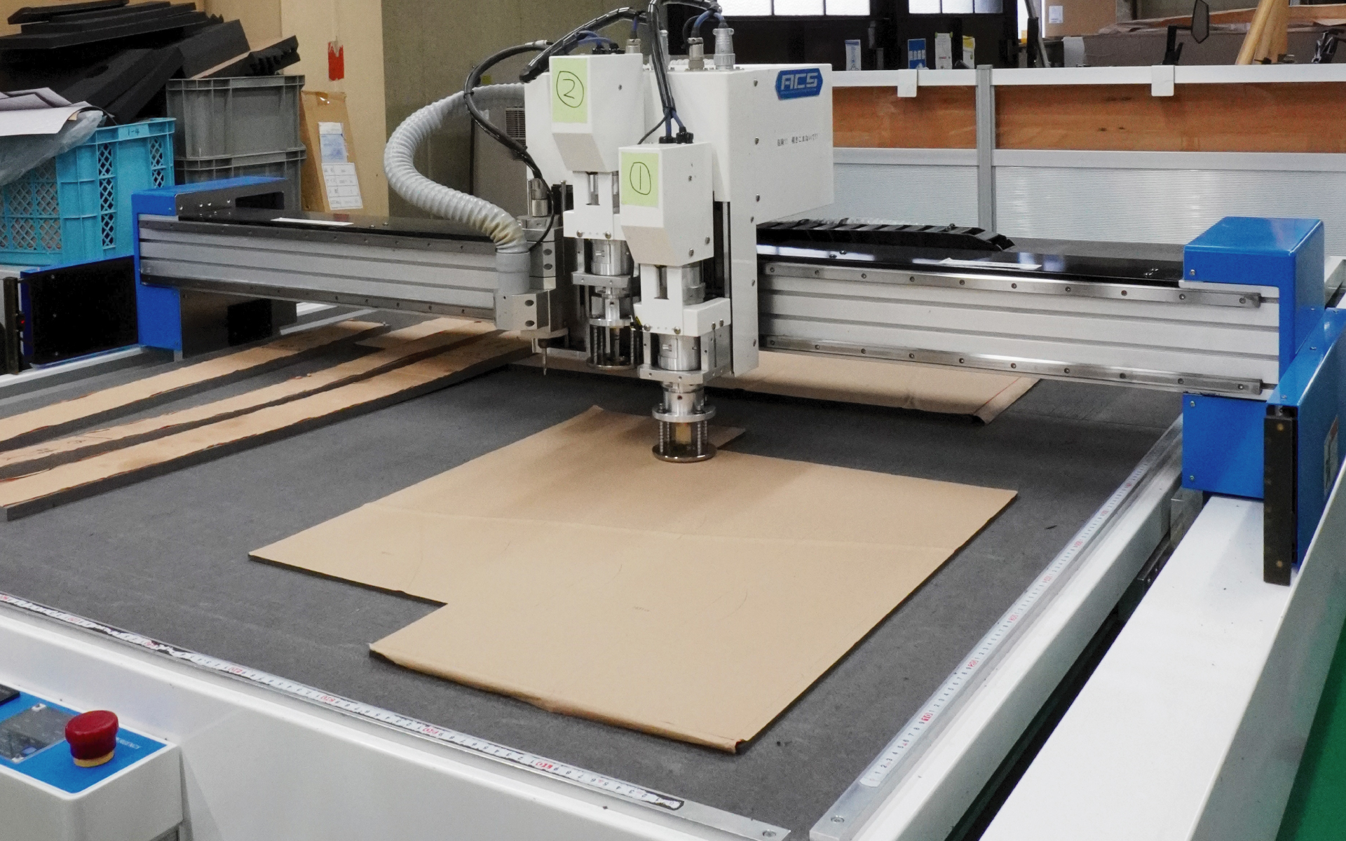 コンピュータ制御でカッター刃を動かし、シート状の素材(フィルム、布、紙など)を正確にカットする機械です。