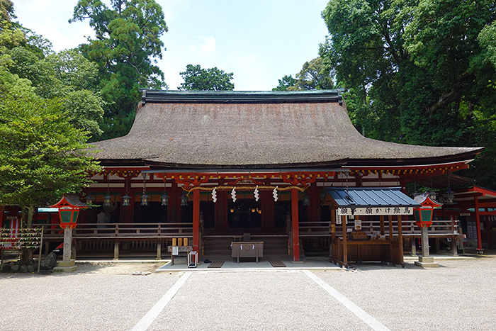 拝殿は白河天皇が石上神宮の鎮魂祭のために1081年に宮中の神嘉殿を寄進されたと伝えられており、国宝にも指定されています。 |