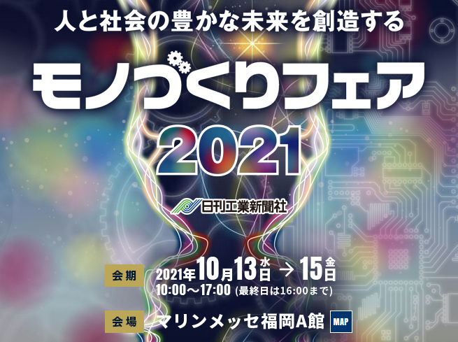 10/13(水)〜10/15(金)にマリンメッセ福岡A館で行われるモノづくりフェア2021に出店します。 |